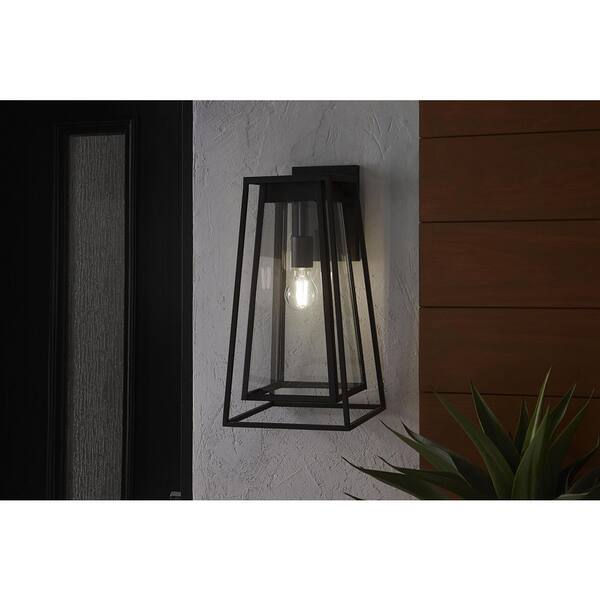Bailey 18 in. Large Modern 1-Light Black Hardwired Double Frame Outdoor Wall Light Lantern Sconce with Clear Glass