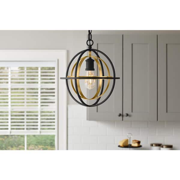 Barton Bay 1-Light Coal and Honey Gold Globe Mini Pendant Hanging Light, Kitchen Pendant Lighting