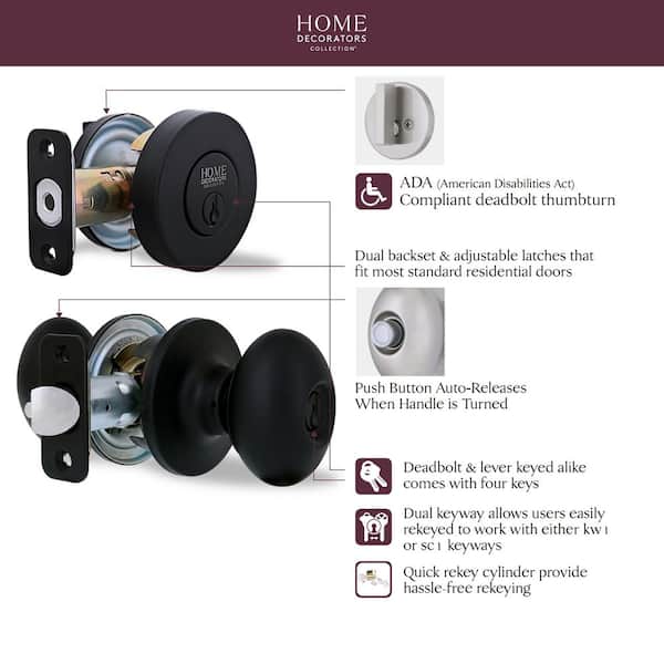 Beale Matte Black Single Cylinder Door Knob Combo Pack Featuring Dual Keyway