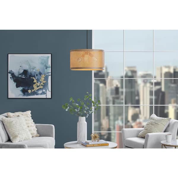 Beau 3-Light 60-Watt Matte Black Shaded Pendant-Light with Natural Wood Finish Shade