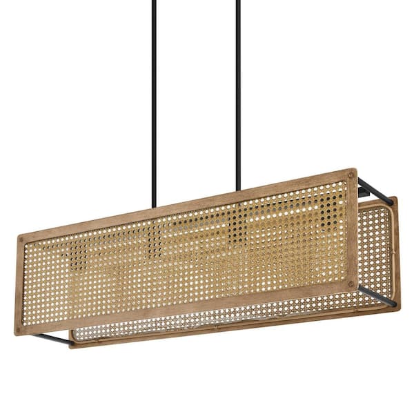 Beau 4-Light Matte Black Linear Chandelier with Natural Wood Finish Shade