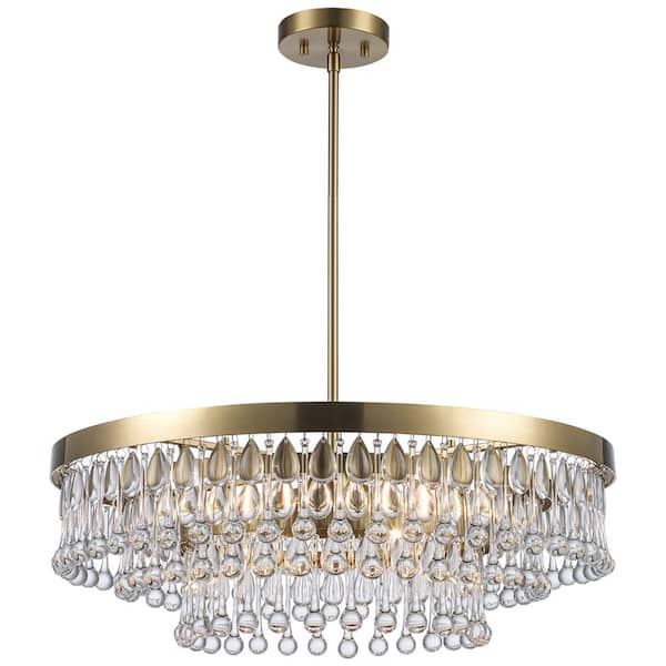 Bedell 4-Light Brass and Tiered Crystal Pendant Light Fixture with Hanging Crystal Beaded Shade