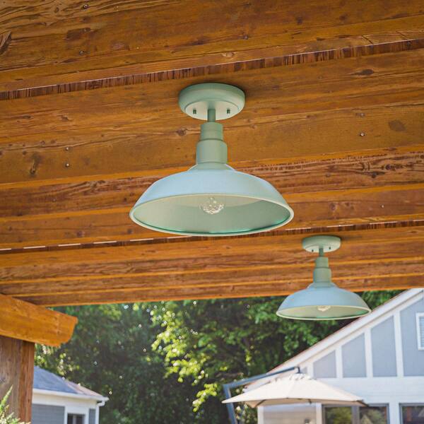 Bell Ridge 14 in. 1-Light Teal Semi-Flush Mount