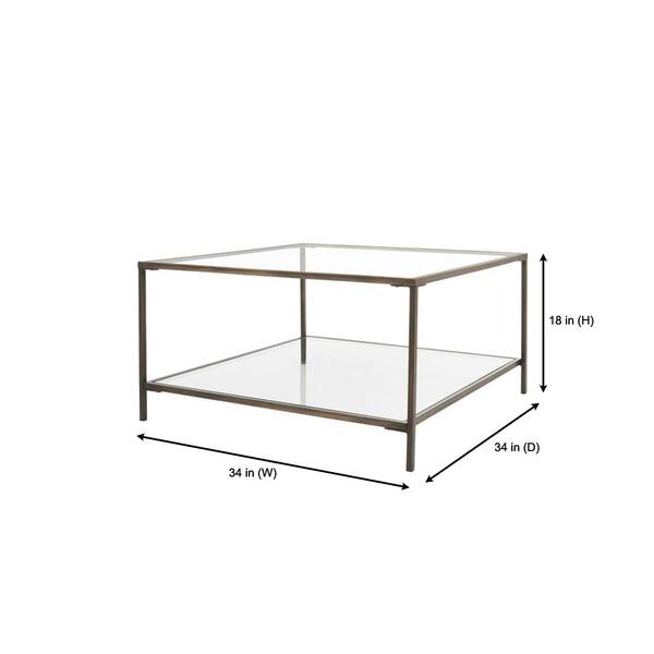 Bella 34 in. Antique Bronze/Clear Medium Square Glass Coffee Table with Shelf
