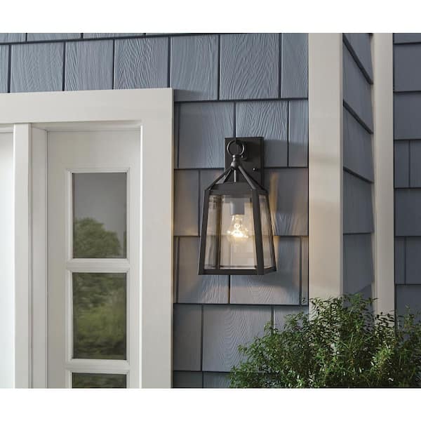 Blakeley 14.88 in. Transitional 1-Light Black Outdoor Wall Light Fixture Sconce with Clear Beveled Glass