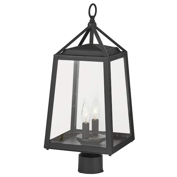 Blakeley Transitional 2-Light Black Outdoor Lamp Post Light Fixture with Clear Beveled Glass