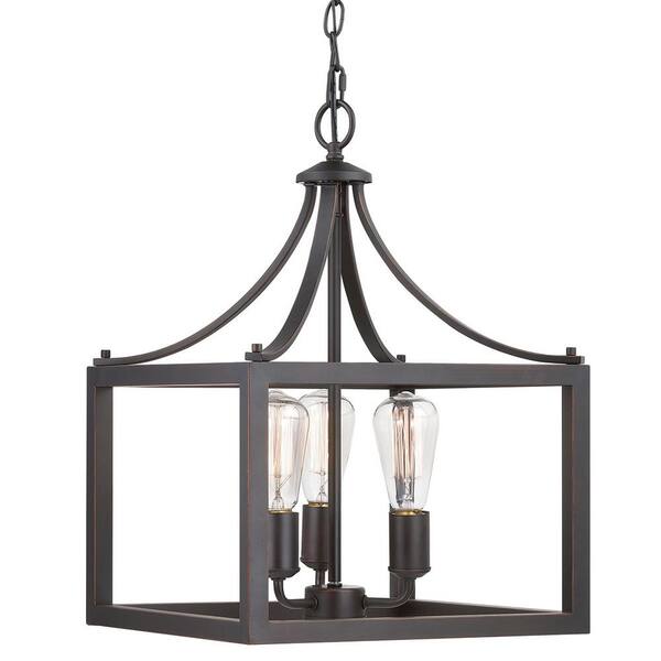 Boswell Quarter 14 in. 3-Light Distressed Black Farmhouse Square Pendant Light