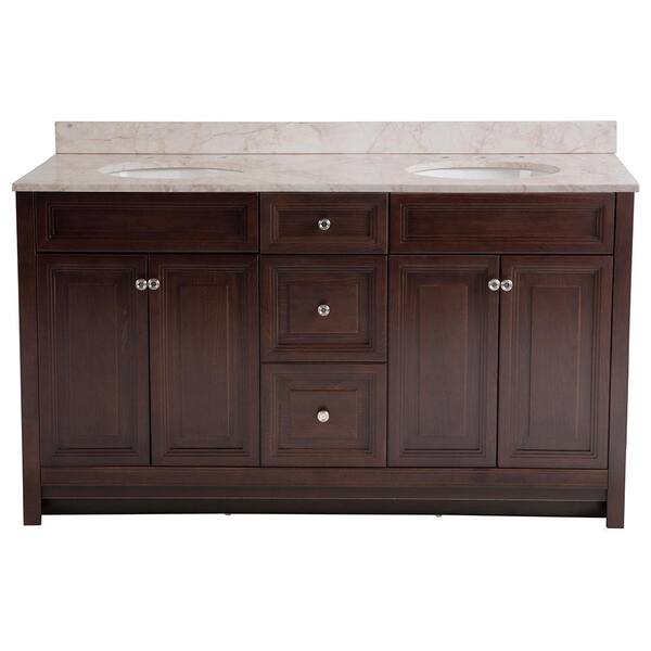 Brinkhill 61 in. W x 22 in. D Bathroom Vanity in Chocolate with Stone Effect Vanity Top in Dune with White Sink