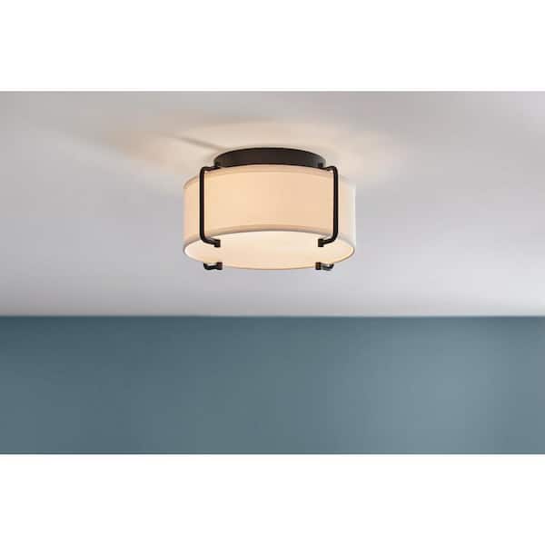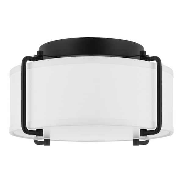 Brookley 13 in. 2-Light Matte Black Flush Mount with White Fabric Shade