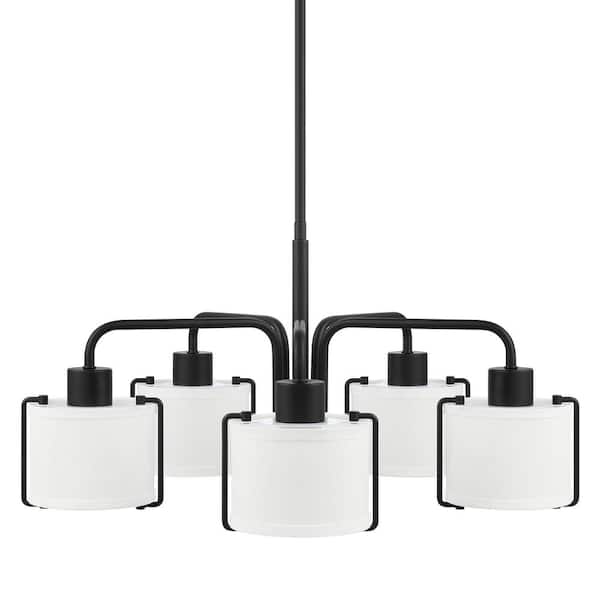 Brookley 5-Light Matte Black Shaded Chandelier with White Fabric Shades