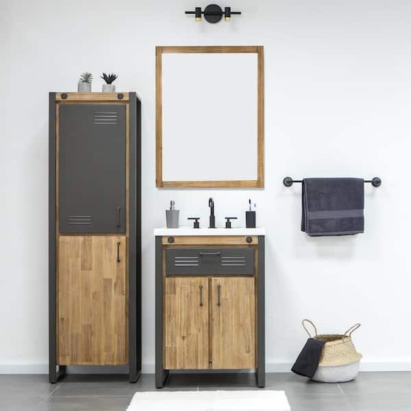 Burnsford 25 in. W x 22 in. D x 34 in. H Vanity in Solid Acacia Wood and Metal with Cultured Marble top with White Sink