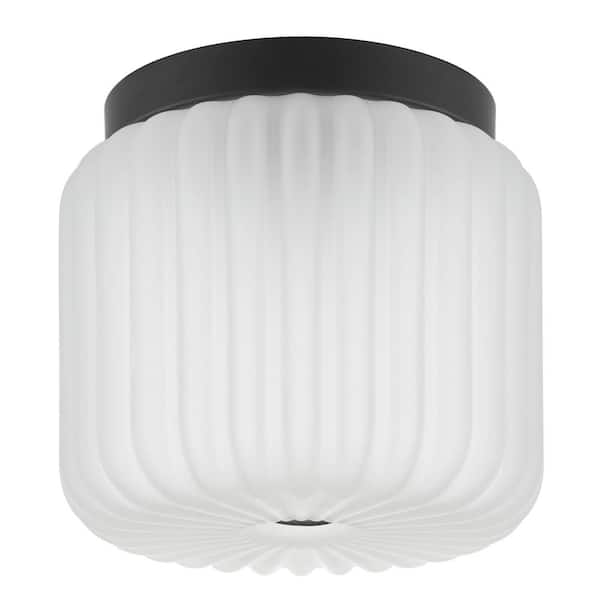 Caroline 7.3 in. 1-Light Matte Black Flush Mount with Frosted Glass
