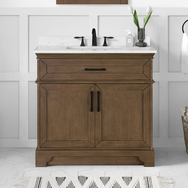 Cherrydale 36 in. Single Sink Almond Latte Bath Vanity with White Engineered Marble Top (Assembled)