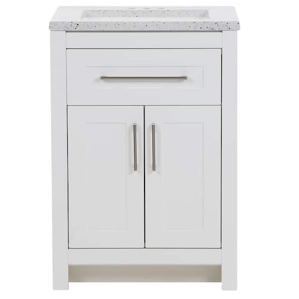 Clady 25 in. Single Sink White Bath Vanity with Silver Ash Cultured Marble Top (Assembled)