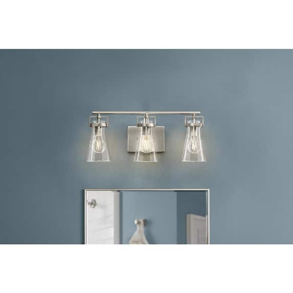 Clermont 22 in. 3-Light Brushed Nickel Bathroom Vanity Light with Seeded Glass Shades