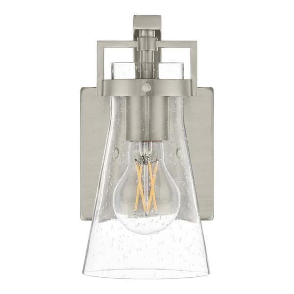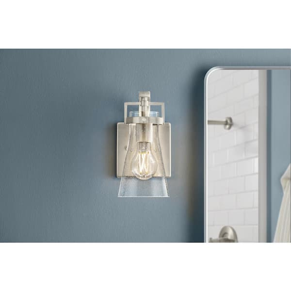 Clermont 5 in. 1-Light Brushed Nickel Bathroom Vanity Light with Seeded Glass Shade