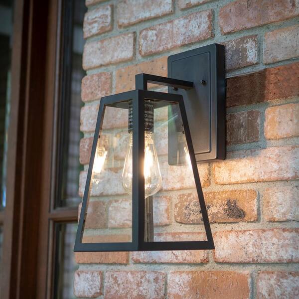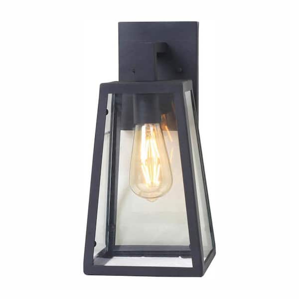Colonade 16.1 in. 1-Light Sand Black Outdoor Wall Lantern Sconce with Clear Glass
