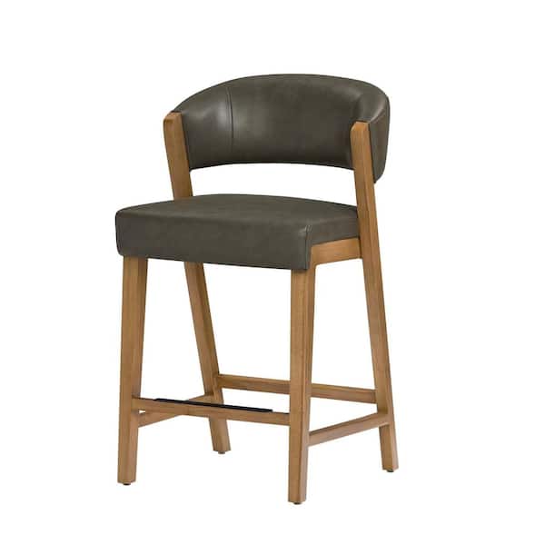 Dunbar 26 in. Slate Color High Back Counter Stool with Faux Leather Seat and Wood Frame