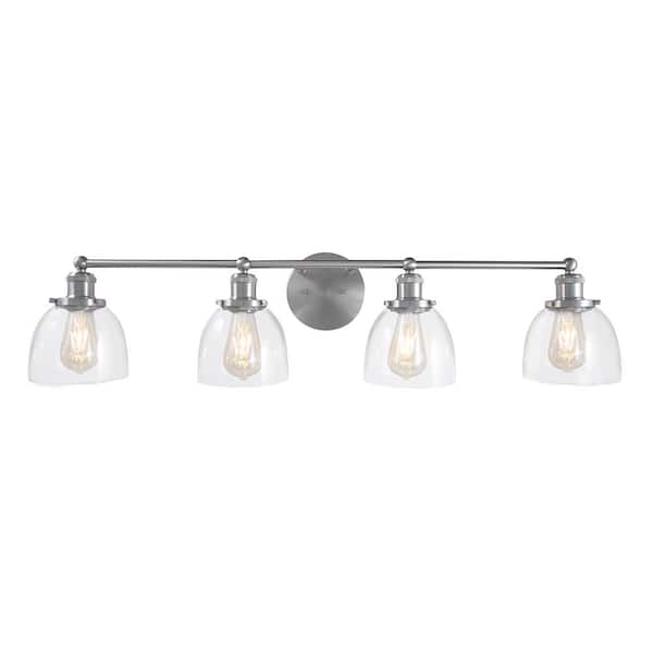 Evelyn 37.5 in. 4-Light Brushed Nickel Industrial Vanity with Clear Glass Shades