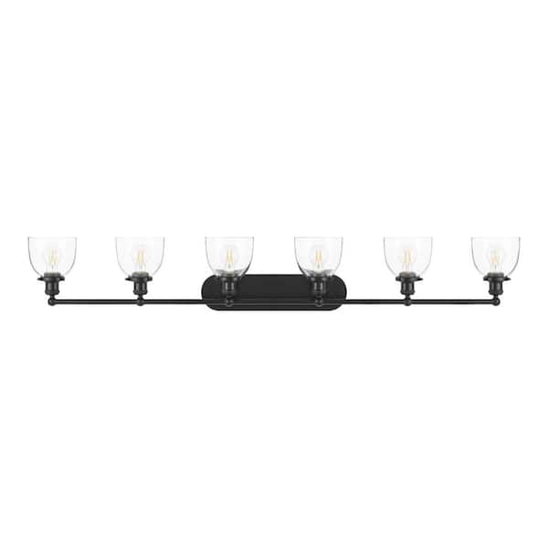Evelyn 58.5 in. 6-Light Matte Black Modern Vanity Light with Clear Glass Shades