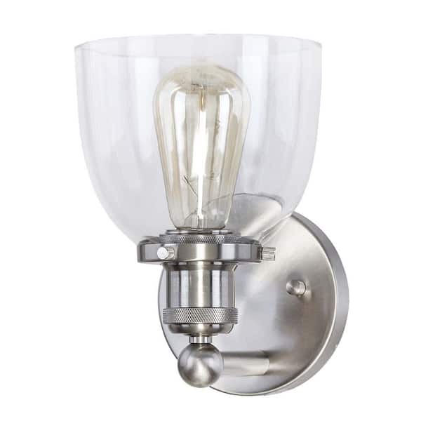 Evelyn 6 in. 1-Light Brushed Nickel Industrial Wall Sconce with Clear Glass Shade