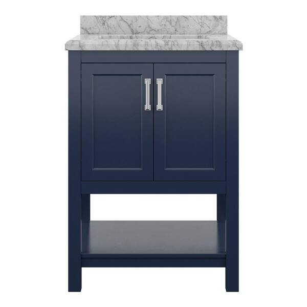 Everett 25 in. Single Sink Agean Blue Bath Vanity with White Carrara Marble Top (Assembled)