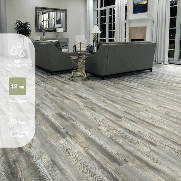 Everett Springs Pine 12 MIL x 7.1 in. W x 48 in. L Click Lock Waterproof Luxury Vinyl Plank Flooring (23.4 sq. ft./case)
