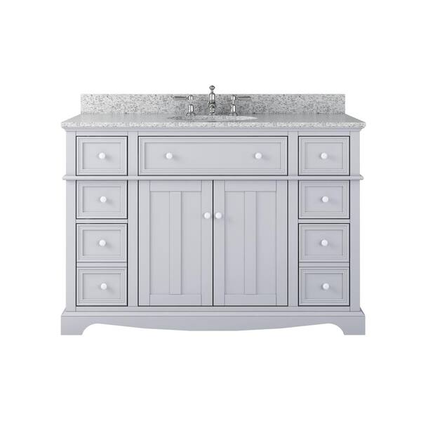 • 49" W x 22" D x 34" H wood vanity with durable grey granite top