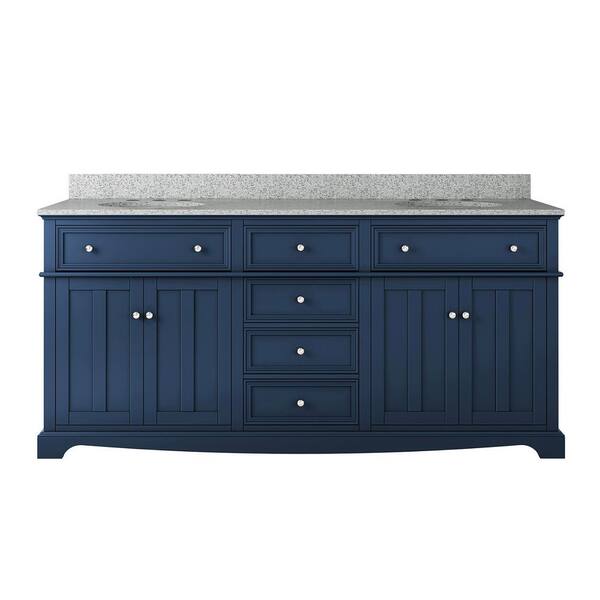 Fremont 72 in. Double Sink Navy Blue Bath Vanity with Grey Granite Top (Assembled)