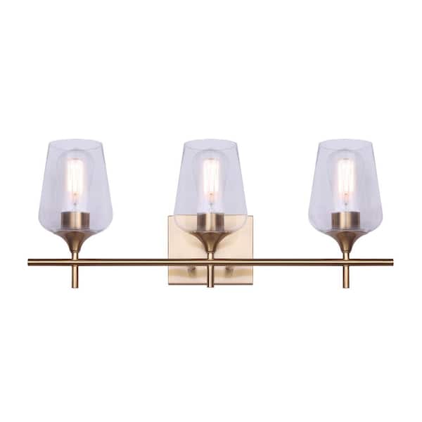 Gabrielle 3-Light Gold Vanity Light with Clear Glass Shades
