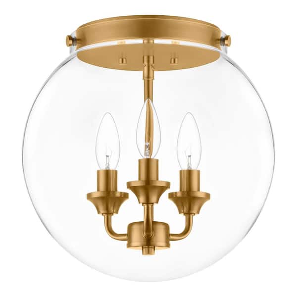 Gardenbrook 12.25 in. 3-Light Brushed Gold Flush Mount with Clear Glass Shade