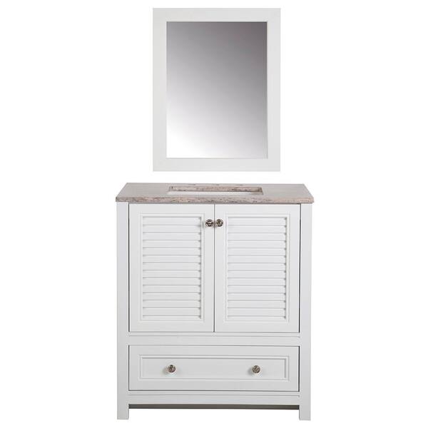 Gladewater 30 in. W x 19 in. D x 35 in. H Single Sink Bath Vanity in White with Stone Composite Top and Mirror