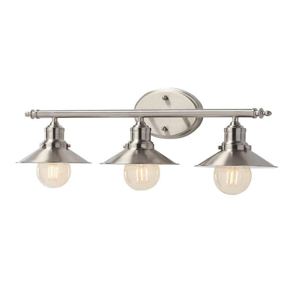 Glenhurst 25 in. 3-Light Industrial Farmhouse Brushed Nickel Bathroom Vanity Light Fixture with Metal Shades