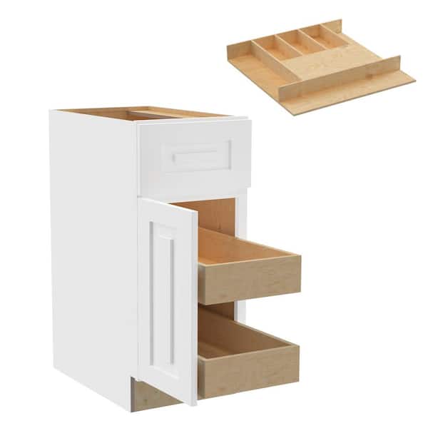 Grayson 15 in. W x 24 in. D x 34.5 in. H Assembled Plywood Base Kitchen Cabinet in Pacific White with 2ROT Cutlery LH