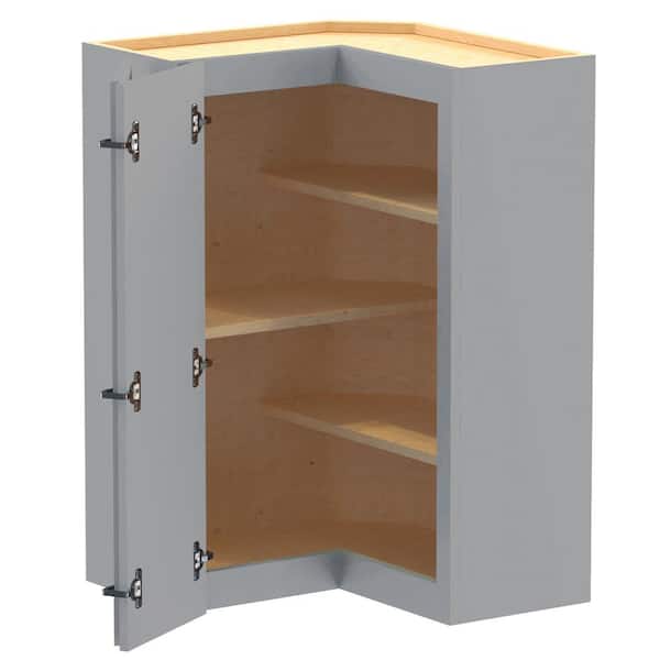Grayson 24 in. W x 12 in. D x 36 in. H Assembled Plywood Corner Wall Kitchen Cabinet in Pearl Gray with Shelves