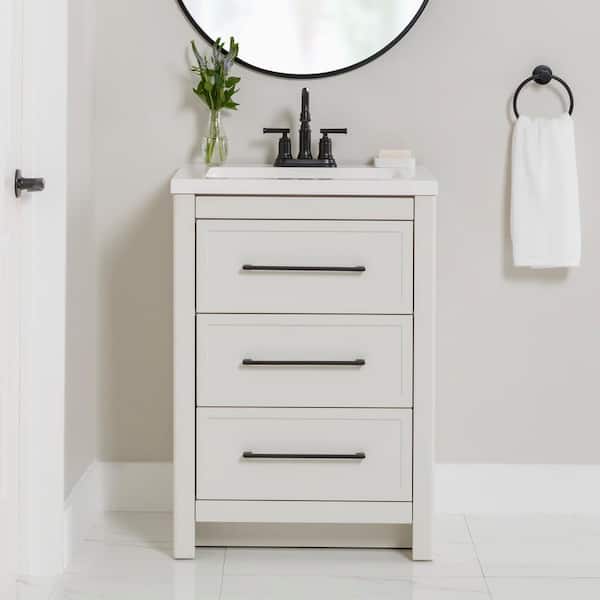 Hailey 25 in. Single Sink Soft Beige Bath Vanity with White Cultured Marble Top (Assembled)