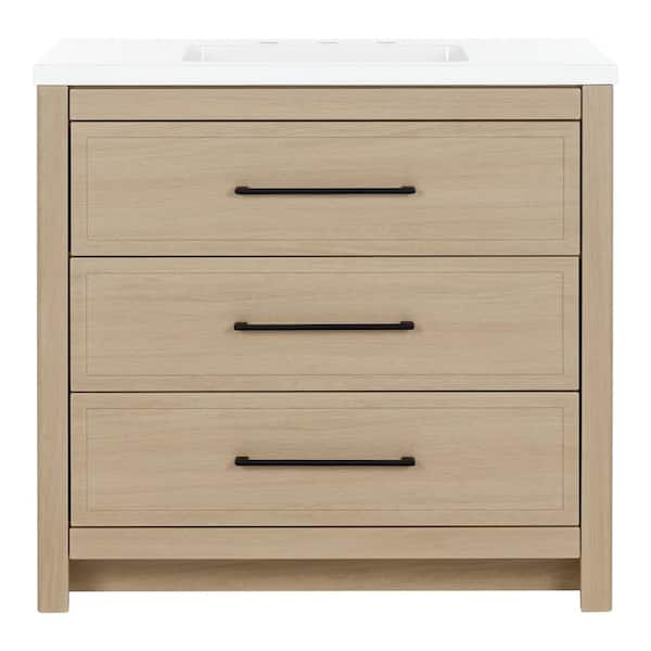 Hailey 37 in. Single Sink Beige Oak Bath Vanity with White Cultured Marble Top (Assembled)