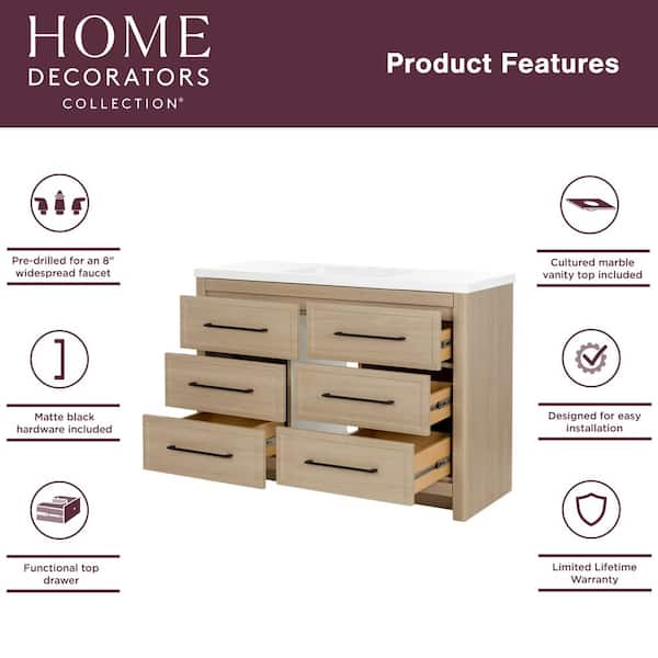 Hailey 49 in. Single Sink Beige Oak Bath Vanity with White Cultured Marble Top (Assembled)