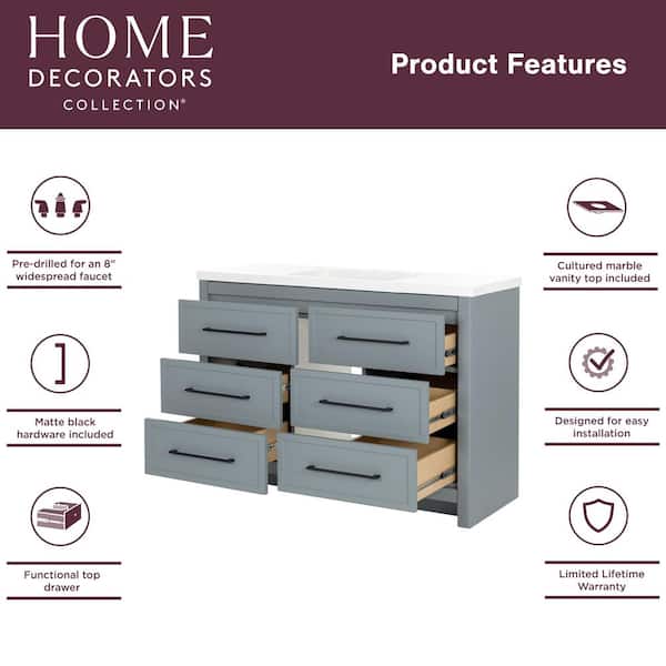 Hailey 49 in. Single Sink Laguna Blue Bath Vanity with White Cultured Marble Top (Assembled)