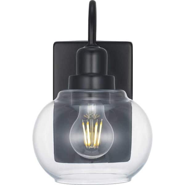 Halyn 1-Light Matte Black Coastal Indoor Wall Sconce with Clear Glass Shade for Bath and Dining