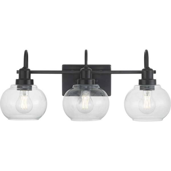 Halyn 23 in. 3-Light Matte Black Bathroom Vanity Light with Clear Glass Shades