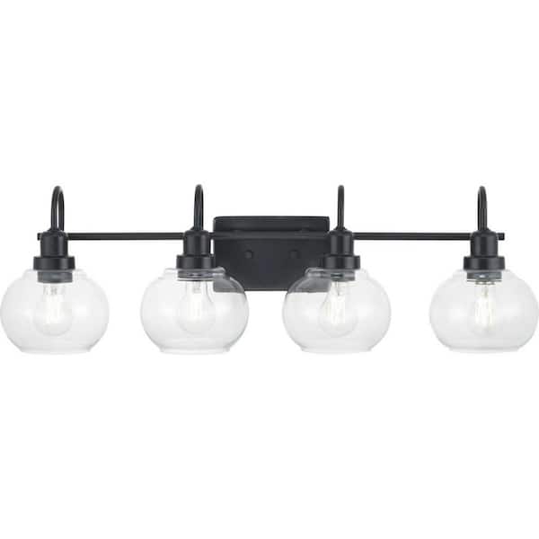 Halyn 31.375 in. 4-Light Matte Black Bathroom Vanity Light with Clear Glass Shades