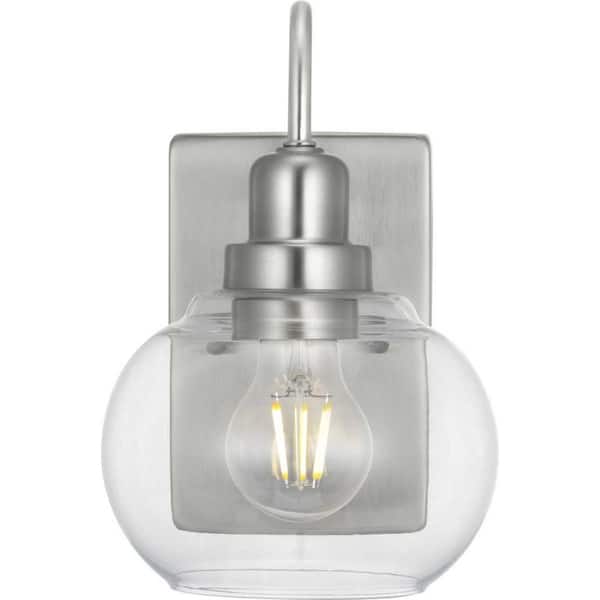 Halyn 4.5 in. 1-Light Brushed Nickel Indoor Wall Sconce with Clear Glass Shade