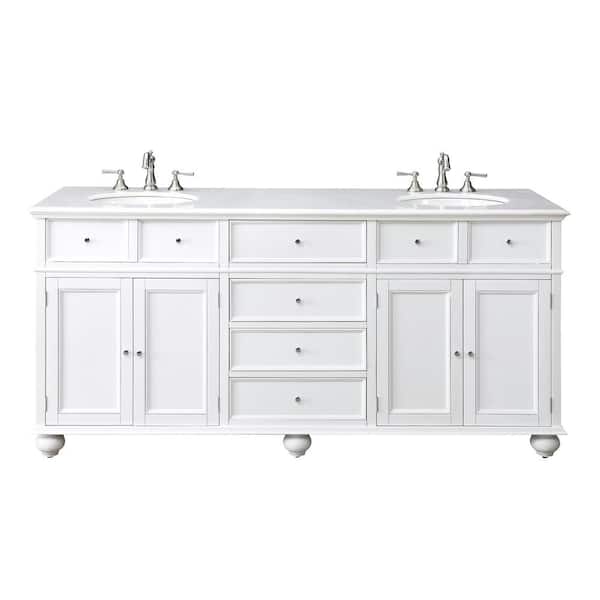 Hampton Harbor 72 in. W x 22 in. D x 35.6 in. H Bath Vanity in White with White Marble Vanity Top