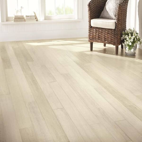 Hand Scraped Wire Brushed Strand Woven White 1/2 in. T x 5-1/8 in. W x 72 in. L Solid Bamboo Flooring