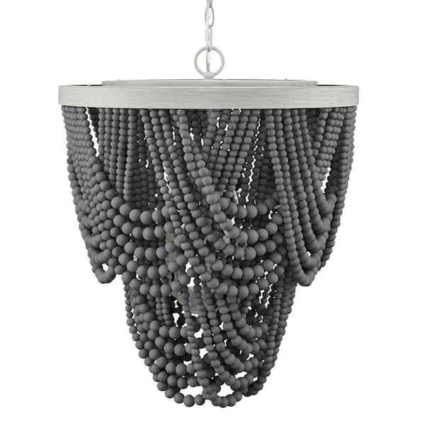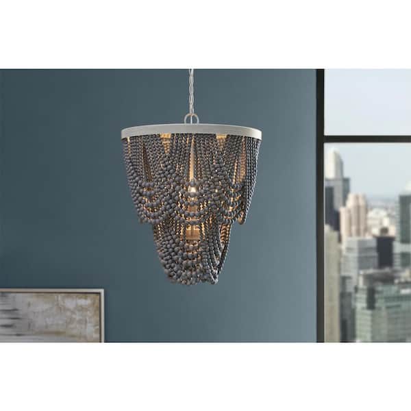 Harlan 5-Light Grey Wood Beaded Chandelier Light Fixture for the Dining Room