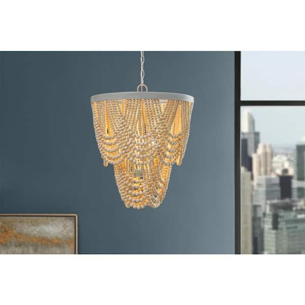Harlan 5-Light Natural Wood Beaded Chandelier Light Fixture for the Dining Room