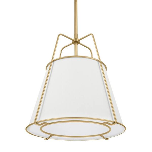 Havenport 2-Light Gold Pendant with White Fabric Shade