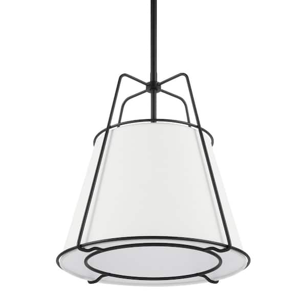 Havenport 2-Light Matte Black Pendant with White Fabric Shade