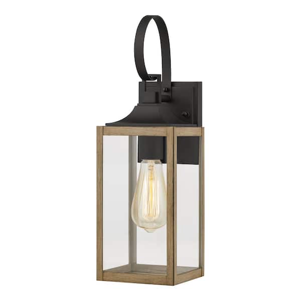 Havenridge 16.6 in. 1-Light Gray Wood Hardwired Outdoor Wall Light Lantern Sconce with Clear Glass (1-Pack)